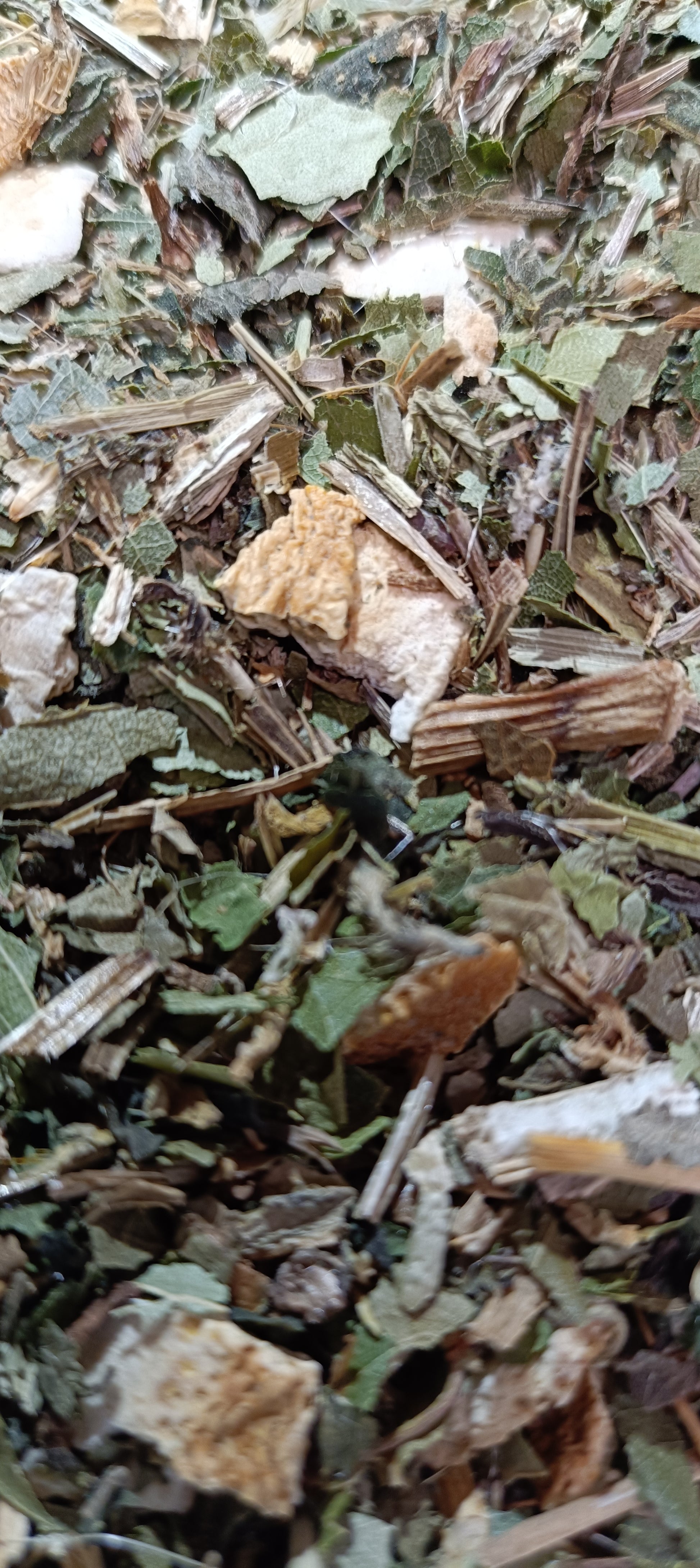 Ingrediënten: paardenbloemblad, brandnetelblad, berkenblad, citroenschil, kleefkruid.