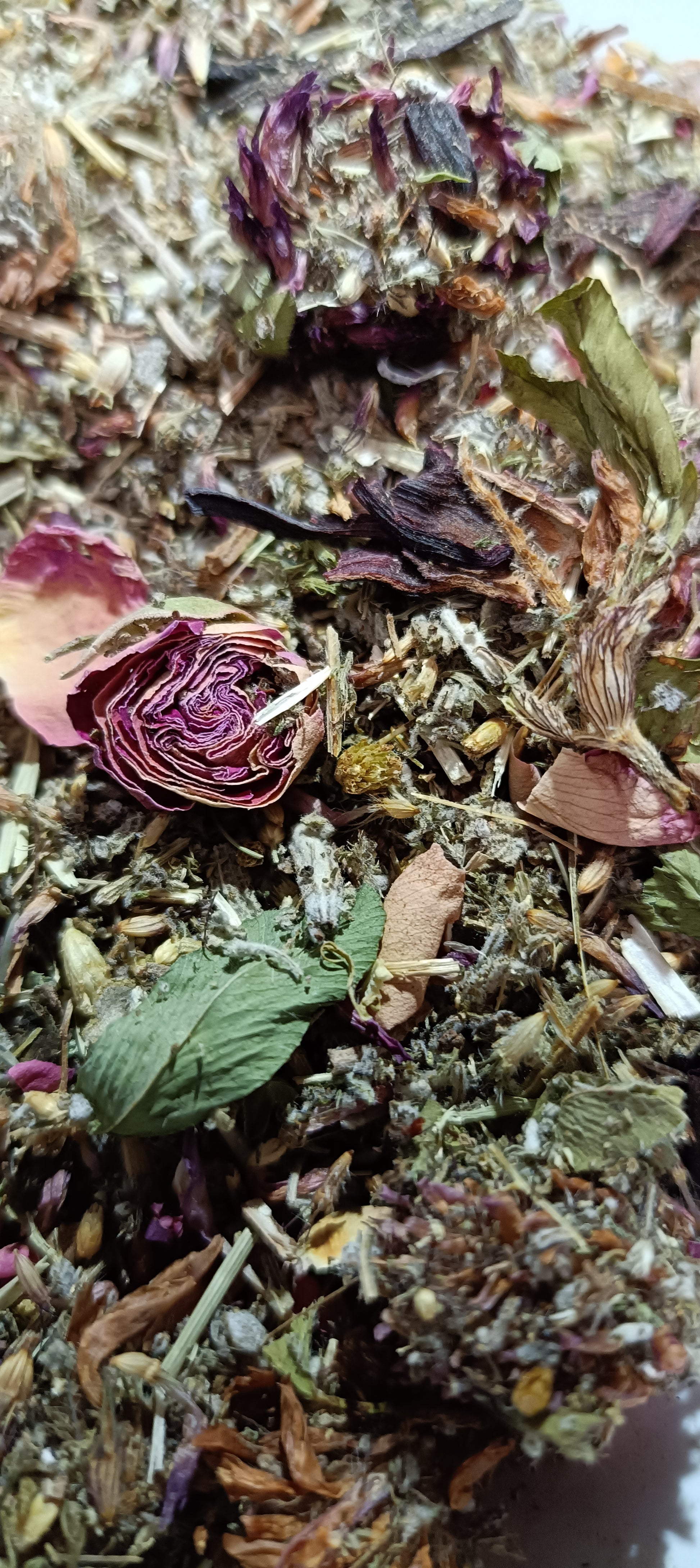 Ingrediënten: Damascusroosjes, Salie, duizendblad, Rode Klaver, Hibiscus, engelwortel