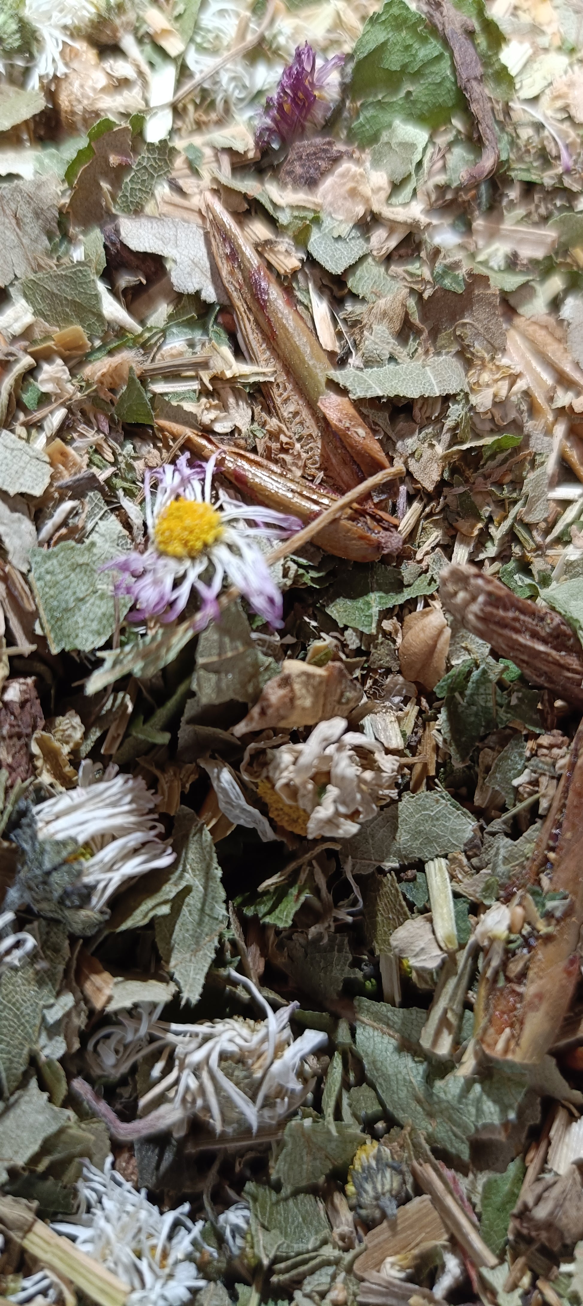 Ingrediënten: berkenblad, madelief, populierenknoppen, driekleurviooltje.